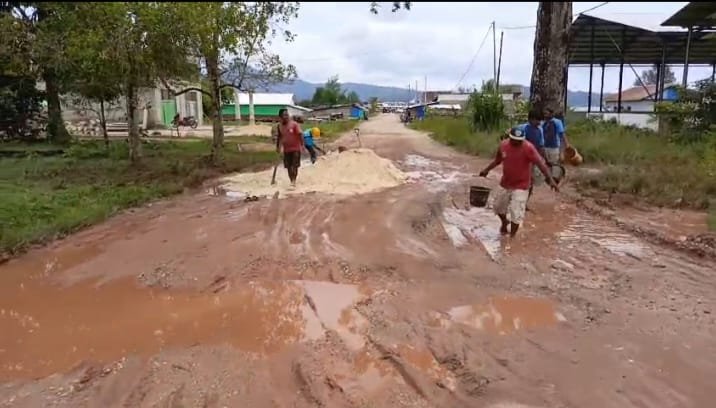 “Kalau hujan, jalan becek dan berlubang. Kadang mobil kami harus putar balik karena tidak bisa lewat. Padahal ini jalan utama ke pelabuhan,” ujarnya.