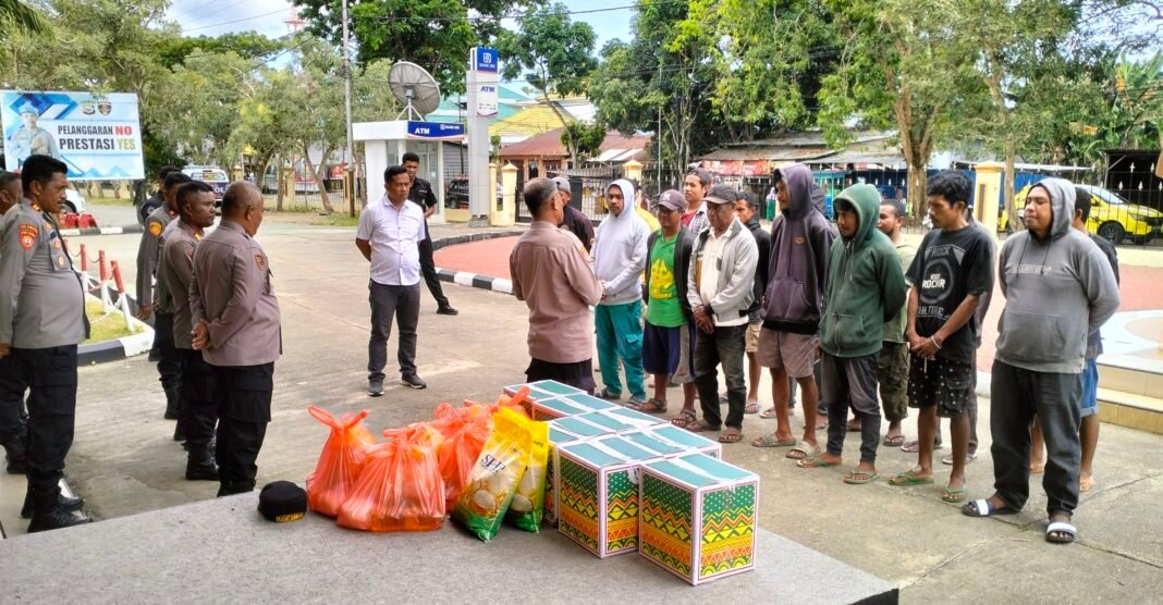 Kegiatan tersebut sekaligus membagikan bantuan bantuan sosial (bansos) kepada kelompok ojek pangkalan yang bertempat depan Lobi Kantor Polres Kepulauan Sula, Desa Fatce, Kecamatan Sanana, Rabu (22/10/2025)