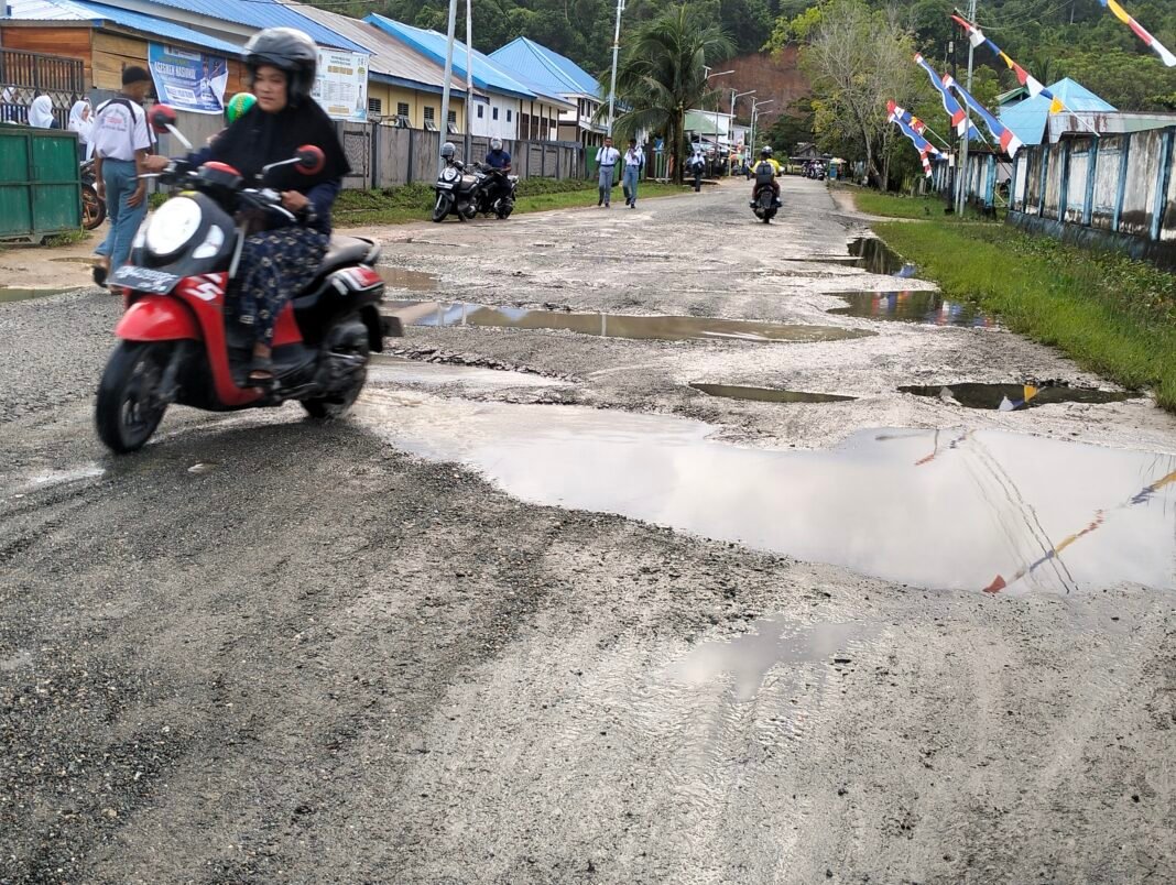 Bobong, Ufuktimur.com– Akses jalan menuju pusat pendidikan rusak dipenuhi becek. Kerusakan jalan tepatnya di depan SMA Negeri 1 Pulau Taliabu itu sudah sangat lama namun tak kunjung diperbaiki. Padahal, kerusakan tersebut berada tepat di pusat pendidikan. Meski begitu, pemerintah daerah baik sebelumnya maupun saat ini hanya membiarkan begitu saja.