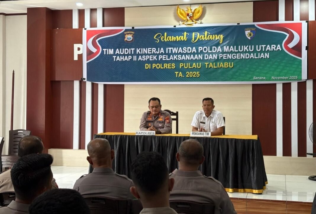 Kapolres Pulau Taliabu, AKBP. Adnan Wahyu Kashogi ditemui di Mapolres Kepulauan Sula menjelaskan, bahwa pelaksanaan Audit kinerja tahap II ini berfokus pada aspek pelaksanaan dan pengendalian kinerja di tahun 2025. Ia menjelaskan, aspek pelaksanaan dan pengendalian yaitu, pelaksanaan tugas dan kinerja Polres Pulau Taliabu di tahun 2025 ini sejauh mana, kemudian terkait penggunaan anggaran serta kinerja anggota.