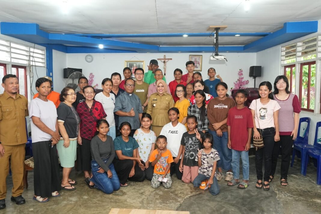 Sanana, Ufuktimur.com — Bupati Kabupaten Kepulauan Sula, Fifian Adeningsi Mus, Wakil Bupati, Saleh Marasabessy bersama Pimpinan OPD dilingkup Pemda Kepsul bagikan parsel natal kepada umat Kristiani menjelang Natal dan Tahun Baru (Nataru), Selasa (23/12/2025)