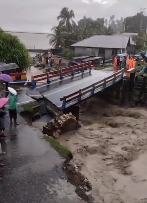 “Jembatan Ambruk kurang lebih pukul 8 WIT dan saya bersama staf mendapat laporan langsung turun ke lokasi untuk memantau langsung kondisi jembatannya, sekira pukul 8 Lewat WIT” ujar Samsudin Ode Maniwi Kepada Ufuktimur.com, Selasa (7/10/2025)