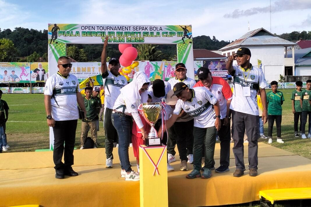 “Atas nama Pemerintah Kabupaten Kepulauan Sula, kami menyambut baik serta memberikan apresiasi kepada seluruh panitia peserta jajaran yang telah mempersiapkan seluruh tahapan turnamen sepak bola Bupati Cup III tahun 2025,” ucap Ratu Gedung Putih alias Bupati Kepulauan Sula Hj. Fifian Adeningsi Mus (FAM) dalam sambutannya. Senin, (3/11/2025).