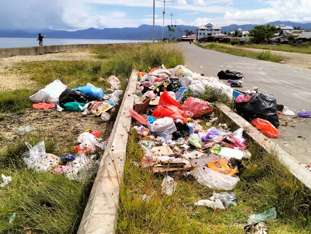 Sanana, Ufutimur.com– Sampah Berserakan di tepi jalan raya timbunan Fatce Kecamatan Sanana, Kepulauan Sula.