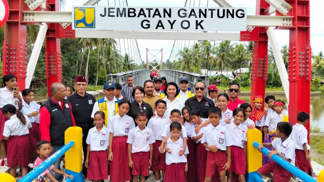 Halut, ufuktimur.com —Anggota Komisi V DPR RI, Fraksi PDI Perjuangan dapil Malut, Irine Yusiana Roba Putri, meresmikan Jembatan Gantung Gayok di Kecamatan Malifut, Kabupaten Halmahera Utara, Maluku Utara, bersama para Kepala Balai dari Kementerian Pekerjaan Umum (10/2/2026).